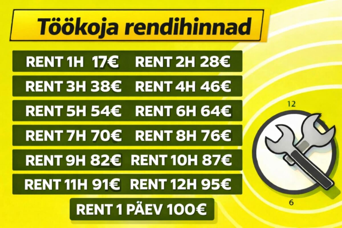 - Kaubiku rent 1h / 15€ iga lisa h 2€
